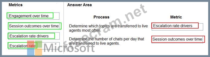Which metrics should you use? To answer, drag the appropriate metrics to the correct processes. Each metric may be used once, more than once, or not at all. You may need to drag the split bar between panes or scroll to view content.