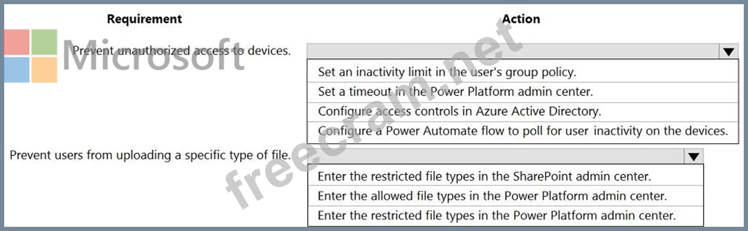 Question 1: A company plans to create two Microsoft Power Platform appli...