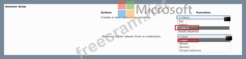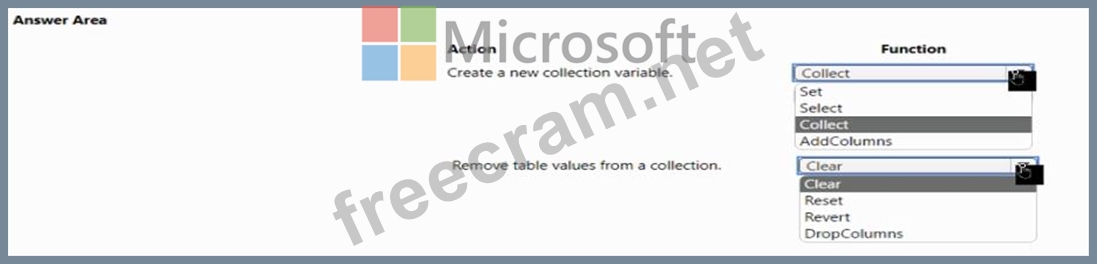 Question 49: You create a canvas app that uses data from a Microsoft SQL ...