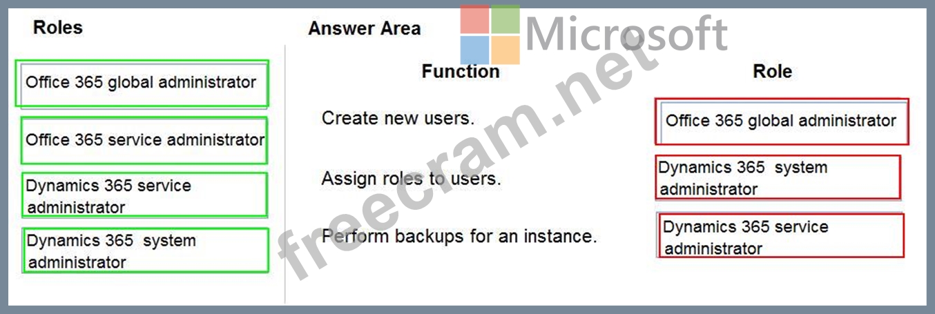 Which roles should you recommend? To answer, drag the appropriate roles to the correct functions. Each role may be used once, more than once, or not at all. You may need to drag the split bar between panes or scroll to view content.