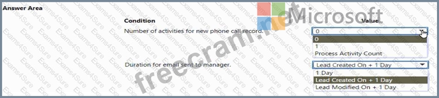 * Managers assign lead records to the sales department. A new phone call record must be created if a lead record has no activities.
