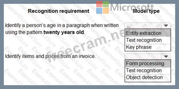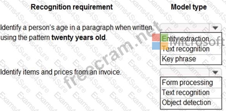 Which model types should you use? To answer, select the appropriate options in the answer area.