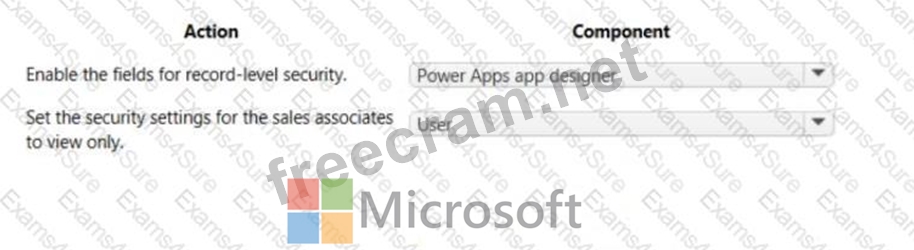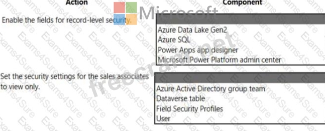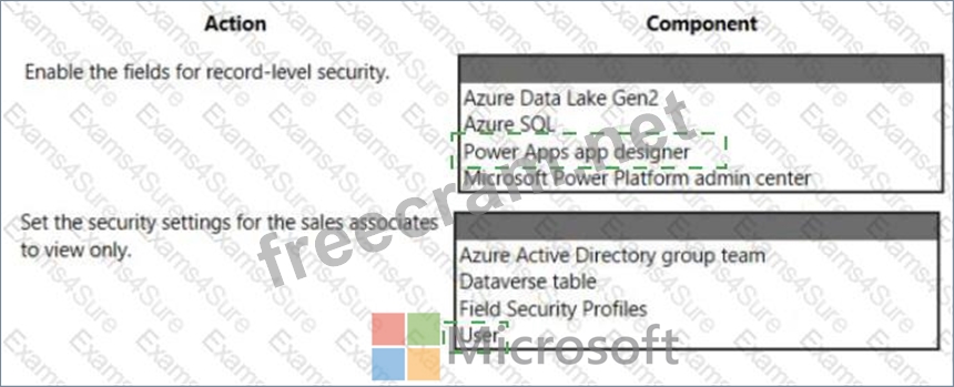 Which component for field-level security should you use? TO answer, select the appropriate options in the answer area.