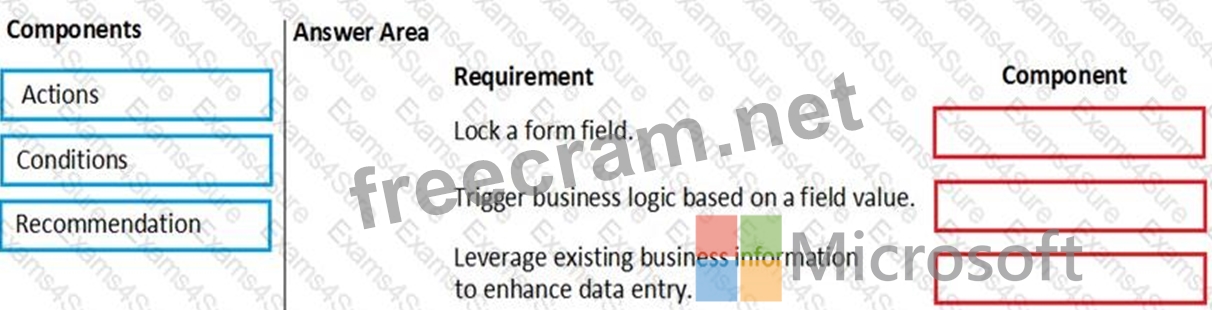 Which components should you use? To answer, drag the appropriate components to the correct requirements.