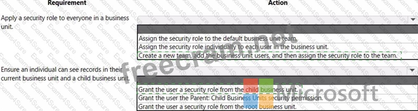 Box 1: Create a new team, and the business unit users, and the assign the security role to the team.