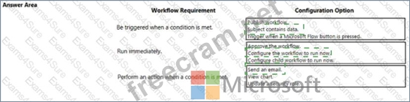 How should you configure the workflow? To answer, select the appropriate configuration in the answer area.
