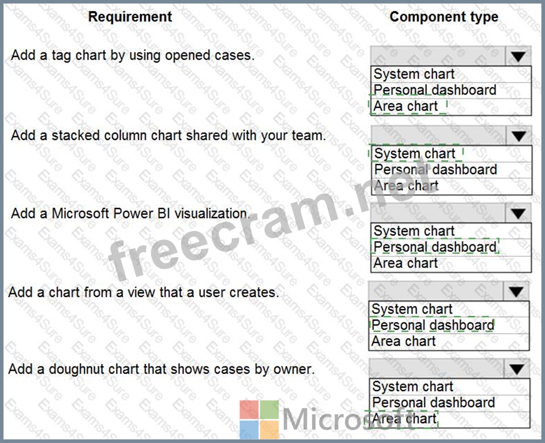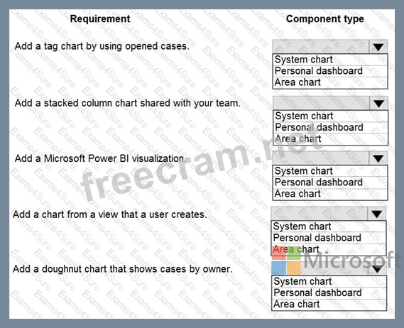 Which dashboard components should you use? To answer, select the appropriate options in the answer area.