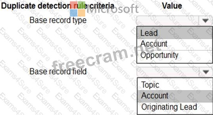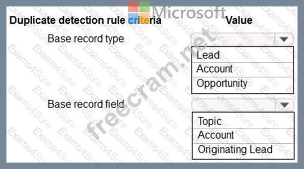 How can you use duplicate detection rules to achieve this goal? To answer, select the appropriate options in the answer area.