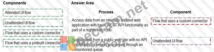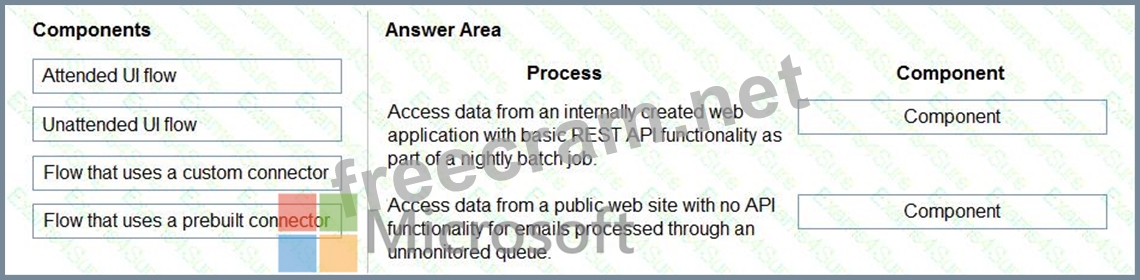 Which components should you recommend? To answer, drag the appropriate components to the correct processes. Each component may be used once, more than once, or not at all. You may need to drag the split bar between panes or scroll to view content.