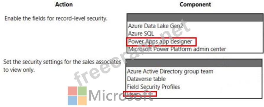 Which component for field-level security should you use? TO answer, select the appropriate options in the answer are a.