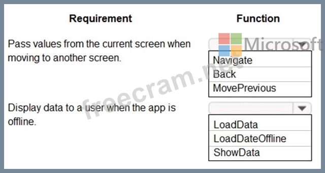 Question 56: You plan to create a canvas app. The app must meet the follo...