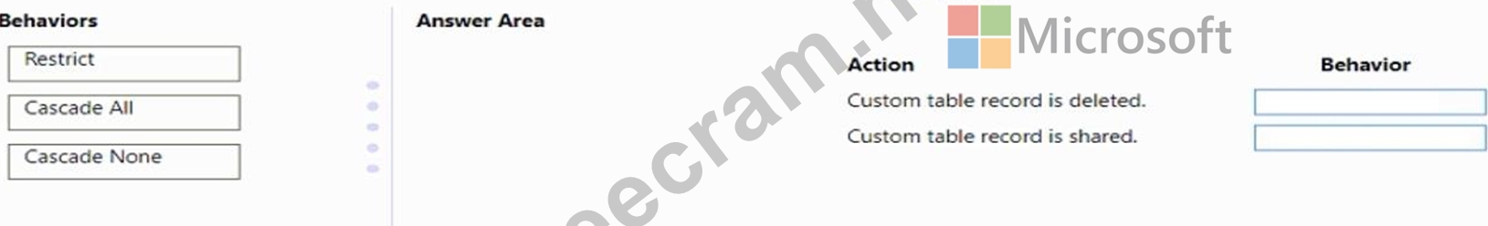 Which behavior should you use? To answer, drag the appropriate behaviors to the correct actions. Each behavior may be used once, more than once, or not at all. You may need to drag the split bar between panes or scroll to view content.