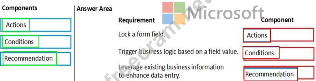 Which components should you use? To answer, drag the appropriate components to the correct requirements. Each component may be used once, more than once, or not at all. You may need to drag the split bar between panes or scroll to view content.