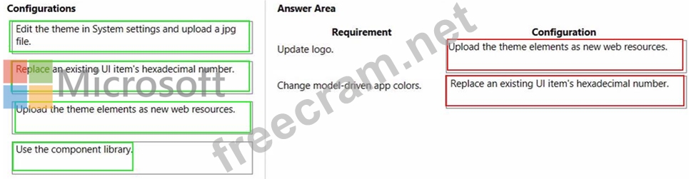 You need to configure the assets. To answer, drag the appropriate configurations to the correct requirements. Each configuration may be used once, more than once, or not at all. You may need to drag the split bar between panes or scroll to view content.