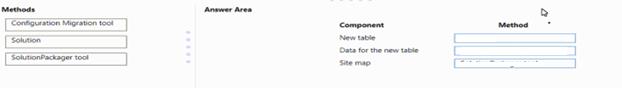 Which method should you use? To answer, drag the appropriate methods to the correct components. Each method may be used once, more than once, or not at all. You may need to drag the split bar between panes or scroll to view content.