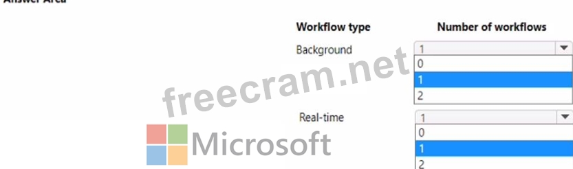 What is the minimum number of workflows you should use? To answer, select the appropriate options in the answer area.