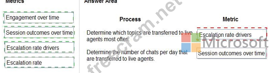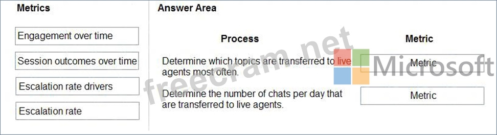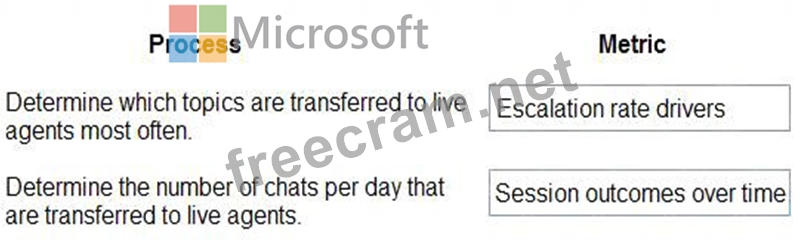 Which metrics should you use? To answer, drag the appropriate metrics to the correct processes. Each metric may be used once, more than once, or not at all. You may need to drag the split bar between panes or scroll to view content.