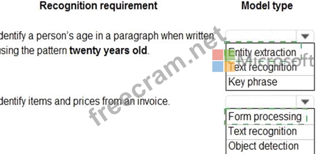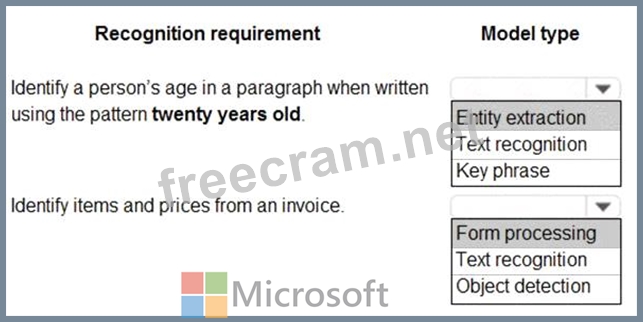 Which model types should you use? To answer, select the appropriate options in the answer area.