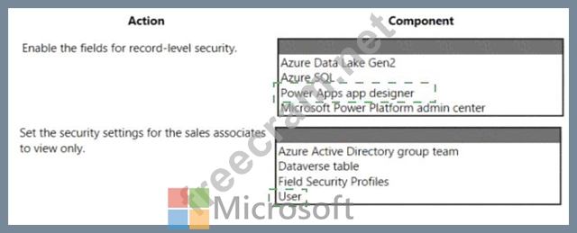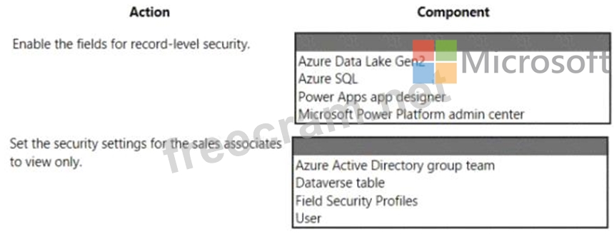 Which component for field-level security should you use? TO answer, select the appropriate options in the answer area.