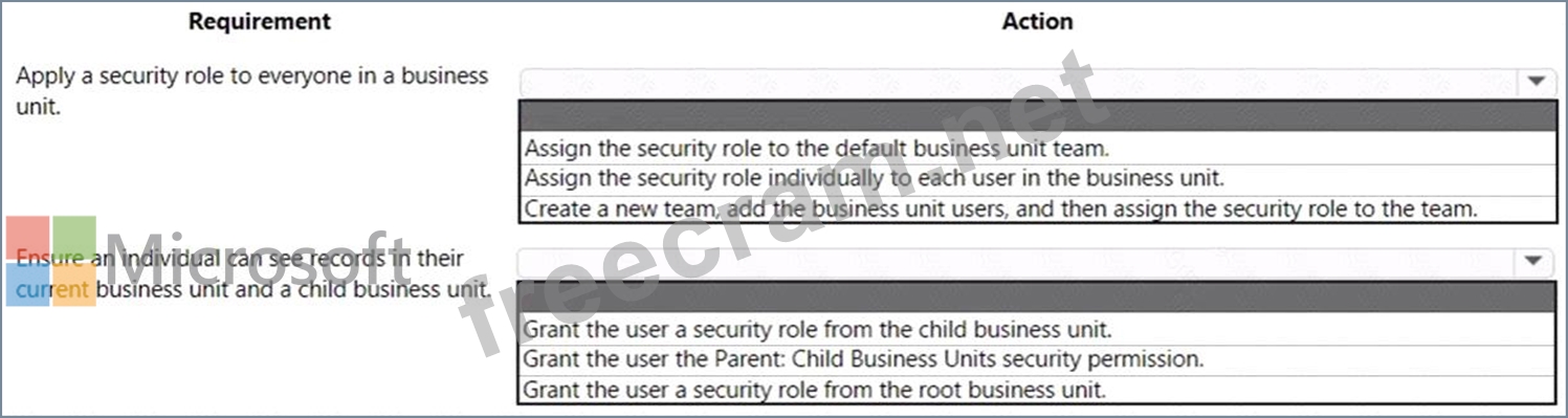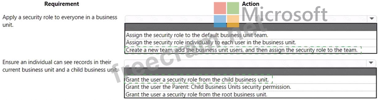 Box 1: Create a new team, and the business unit users, and the assign the security role to the team.