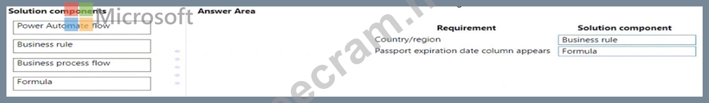 What should you configure? To answer, drag the appropriate solution component to the correct requirements.