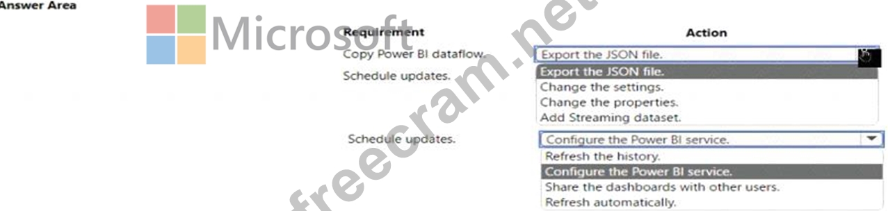 Question 22: You plan to create a Power Bi dataflow. The Power BI dataflo...