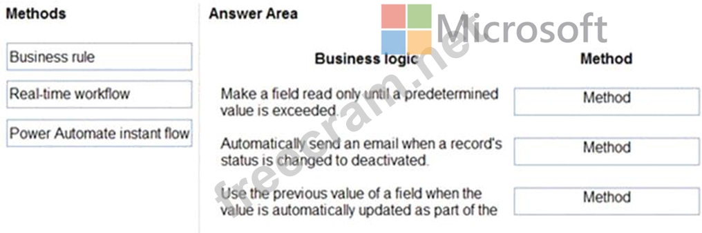 Which method should you use? To answer, drag the appropriate methods to the appropriate business logic statements. Each method may be used once, more than once, or not at all. You may need to drag the split bar between panes or scroll to view content.