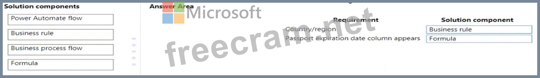 What should you configure? To answer, drag the appropriate solution component to the correct requirements.