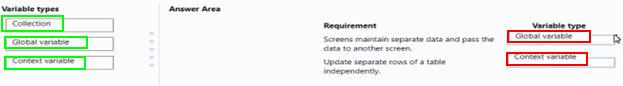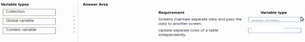 Question 110: You create a Power Apps app. The app must be able to display...