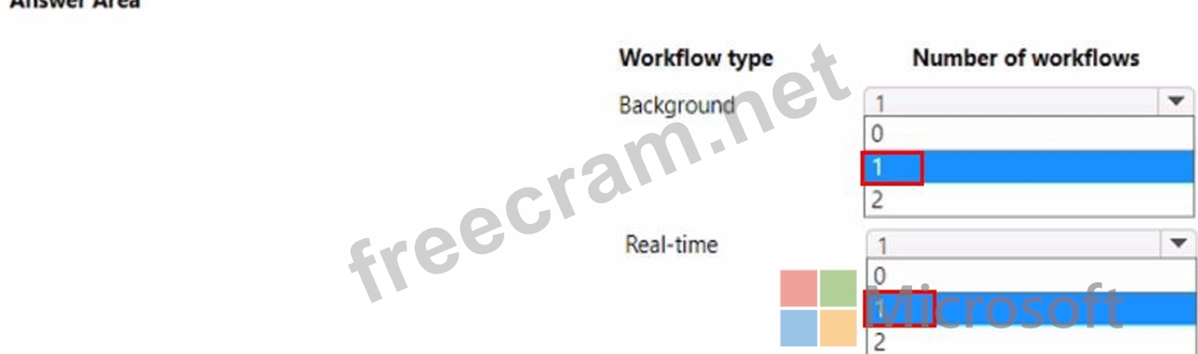 What is the minimum number of workflows you should use? To answer, select the appropriate options in the answer area.