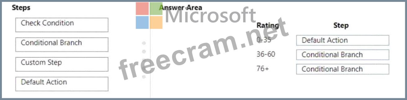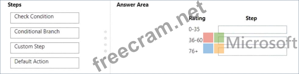 Which step should you use? To answer, drag the appropriate steps to the correct ratings. Each step may be used once, more than once, or not at all. You may need to drag the split bar between panes or scroll to view content NOTE: Each correct selection is worth one point.