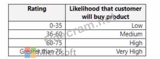 The company uses ratings from zero to one hundred. The company assigns likelihoods based on the following table: