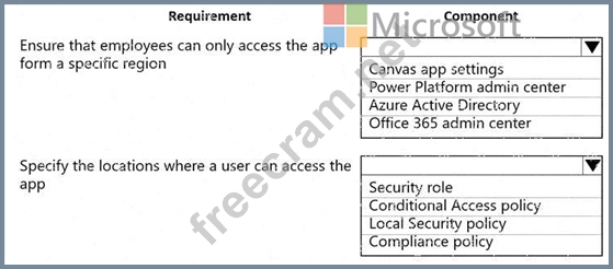 A company uses a canvas app to manage production resources in a specific region. Employees must be at company locations to use the app.