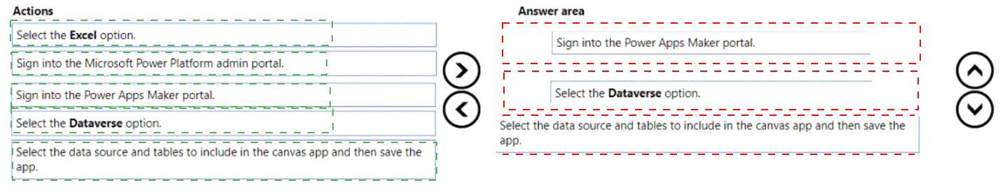 Question 57: You create a canvas app that uses data from a Microsoft SQL ...