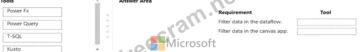 To filter data in a dataflow, you should use Power Query. Power Query is a data connection tool that is part of the Microsoft Power Platform, which allows you to connect to various data sources, transform, and load data into other applications such as Power BI, Excel, and Dataverse. It is a functional, case-sensitive, and data- transformation language that enables you to discover, connect, combine, and refine data sources to meet your business intelligence needs.