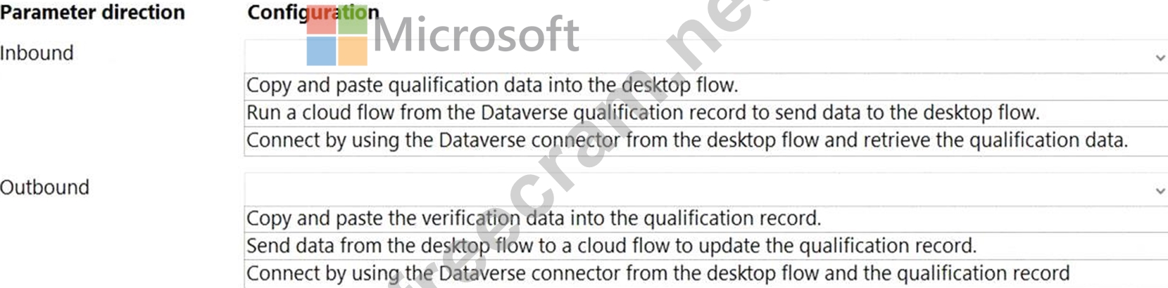 Box 1: Connect by using the Dataverse connector from the desktop flow and retrieve the qualification data.