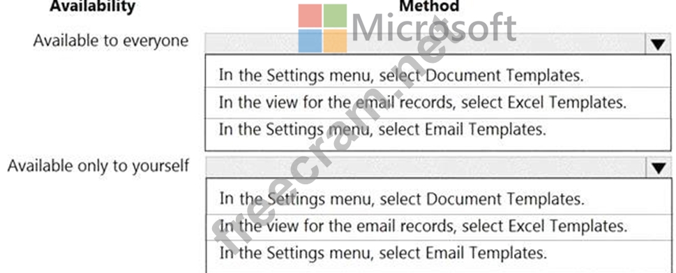 Box 2: In the view for the email records, select Excel templates
