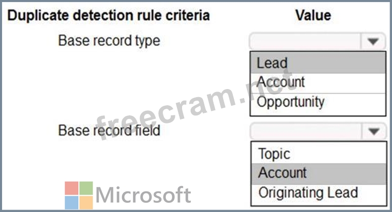 How can you use duplicate detection rules to achieve this goal? To answer, select the appropriate options in the answer area.