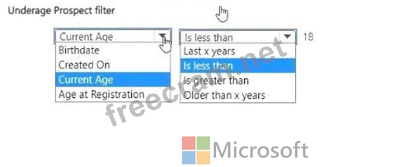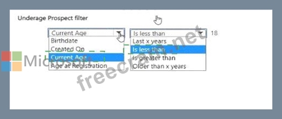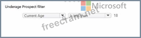 Question 22: You need to create a filter for the Underage Prospects view....