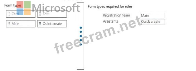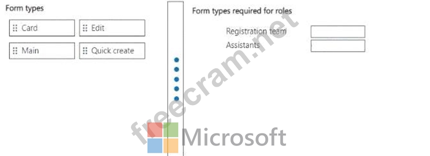 Which form types should you create? To answer, move the appropriate form types to the correct roles. You may use each form type once, more than once, or not at all. You may need to move the split bar between panes or scroll to view content.