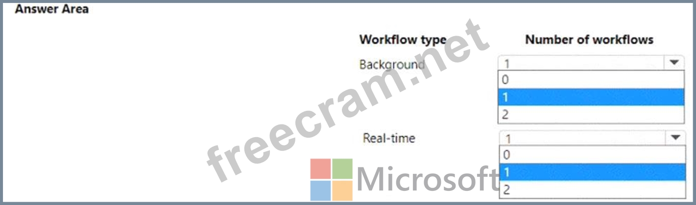 What is the minimum number of workflows you should use? To answer, select the appropriate options in the answer area.