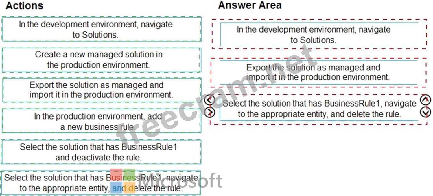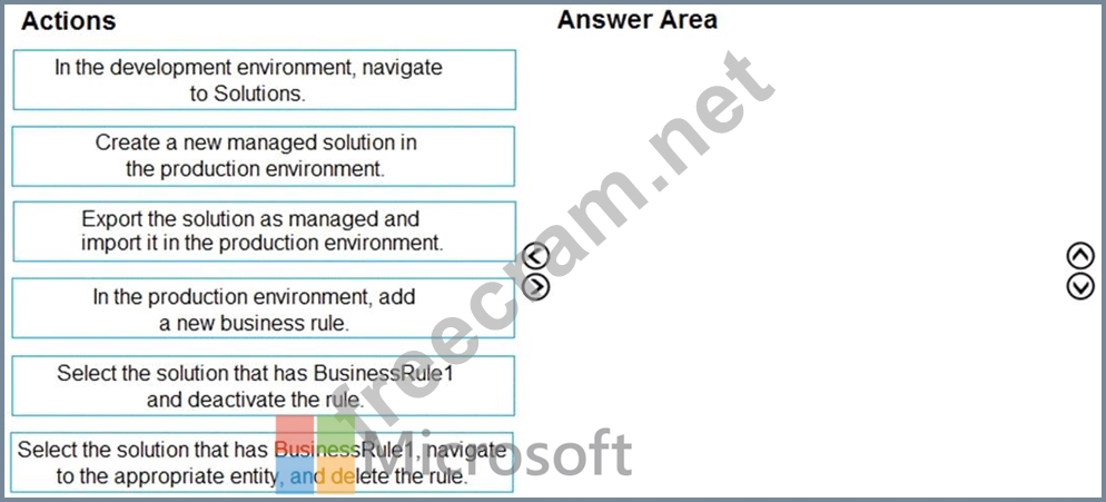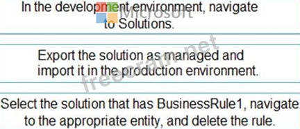An organization has a Dynamics 365 Sales environment. In the development environment, you create a business rule named BusinessRule1 on the Account entity. You deploy BusinessRule1 to production as part of a managed solution.