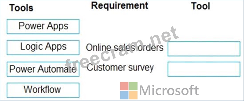 Which platform tools should you recommend? To answer, drag the appropriate tools to the correct requirements. Each tool may be used once, more than once, or not at all. You may need to drag the split bar between panes or scroll to view content.