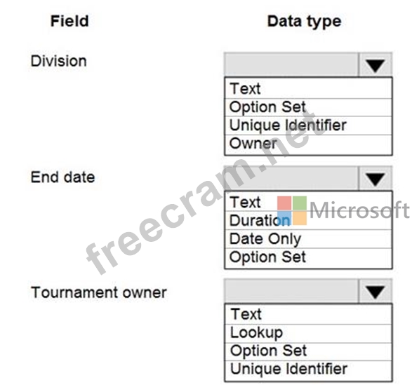 Question 34: You need to select data types for required fields. Which dat...