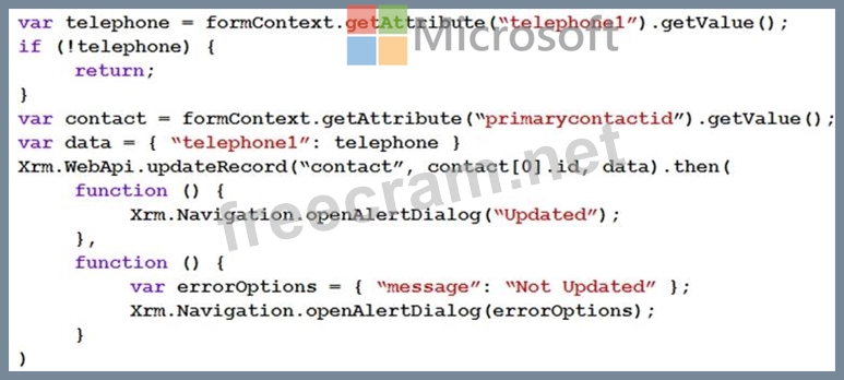 Question 53: A model-driven app has the following JavaScript code. The co...