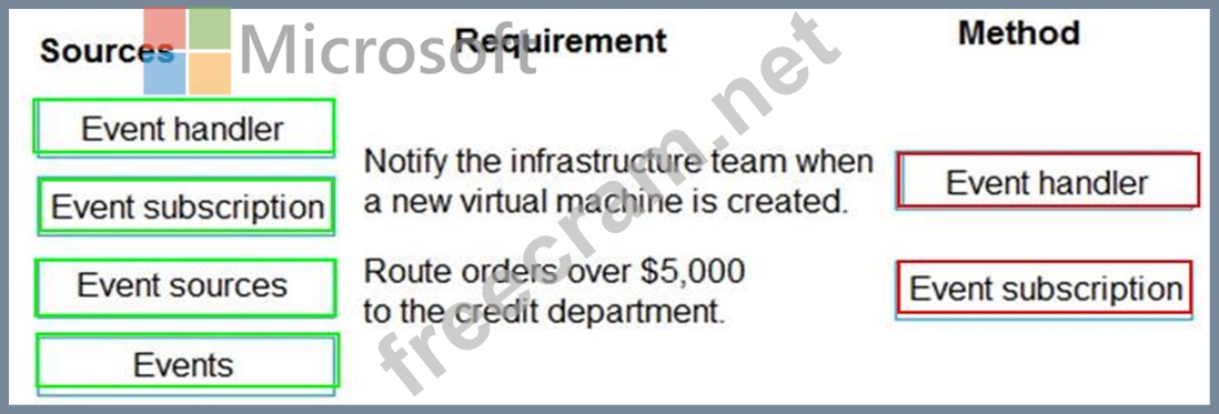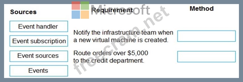 Which method should you use for each requirement? To answer, drag the appropriate methods to the correct requirements. Each method may be used once, more than once, or not at all. You may need to drag the split bar between panes or scroll to view content.