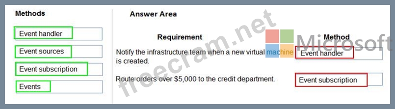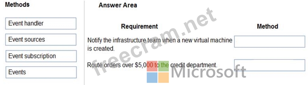 Which method should you use for each requirement? To answer, drag the appropriate methods to the correct requirements. Each method may be used once, more than once, or not at all. You may need to drag the split bar between panes or scroll to view content.