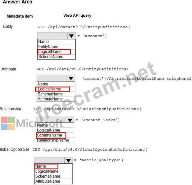 Question 52: You need to use the Dynamics 365 Sales Web API to retrieve m...
