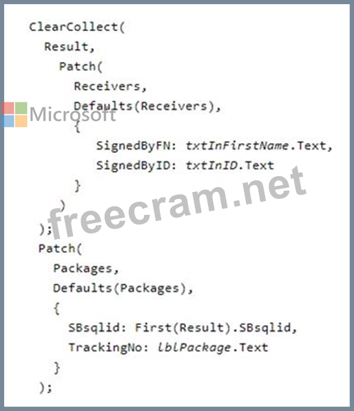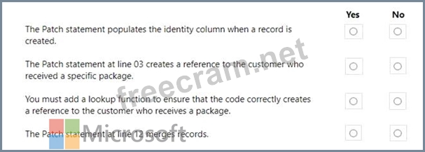 The return value of Patch is the record that you modified or created. If you created a record, the return value may include properties that the data source generated automatically. However, the return value doesn't provide a value for fields of a related table.