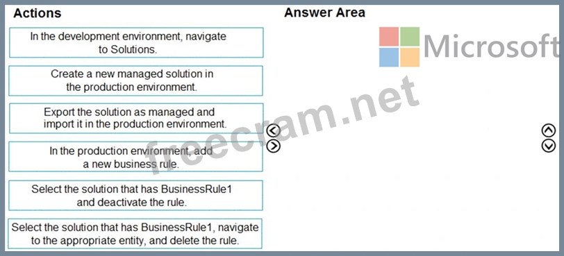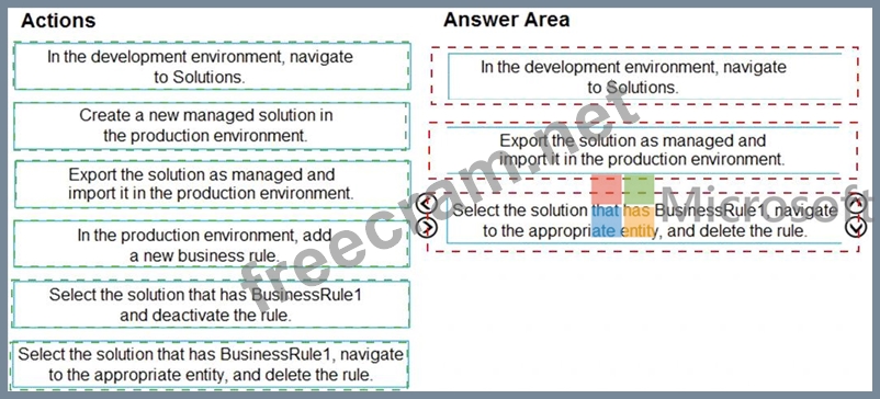 An organization has a Dynamics 365 Sales environment. In the development environment, you create a business rule named BusinessRule1 on the Account entity. You deploy BusinessRule1 to production as part of a managed solution.